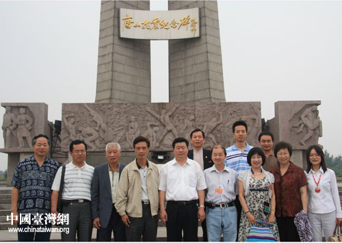 參加“第四屆海峽兩岸企業發展與合作論壇”的嘉賓和代表一行今天參觀了唐山抗震紀念館、南湖生態城等著名景點和建筑。圖為部分嘉賓在唐山抗震紀念碑前合影留念。(中國臺灣網 肖燕 攝)
