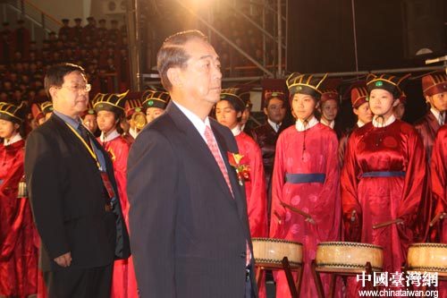 9月27日上午,2009年第二屆兩岸師生聯合祭孔大典在臺灣新竹縣立體育館舉行,圖為親民黨主席宋楚瑜先生受邀主禮正獻。(中國臺灣網 李杰 攝)