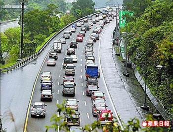 臺(tái)灣高速公路昨涌現(xiàn)出游和提前北返車(chē)潮。來(lái)源:臺(tái)灣《蘋(píng)果日?qǐng)?bào)》