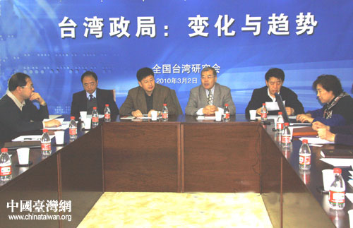 中國臺灣網3月2日北京消息 今天上午,全國臺灣研究會在北京召開研討會,來自中國社會科學院、廈門大學臺灣研究所、北京聯合大學臺灣研究院、中華文化發展促進會等研究機構和高校的十余位臺灣問題專家出席了會議,就島內政局的變化及發展趨勢進行了探討和交流。