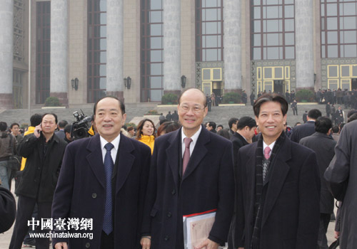 3日下午,全國政協(xié)十一屆三次會議在人民大會堂開幕。圖為政協(xié)委員在人民大會堂前合影。(中國臺灣網(wǎng) 高斯斯 攝)