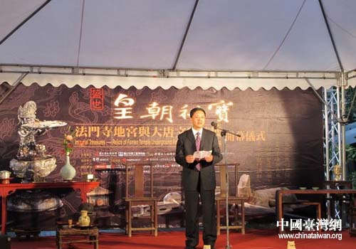 陜西省文物局副局長張文在《法門寺地宮與唐代文物大展》開幕式上致辭(圖片來源:陜西省臺辦)