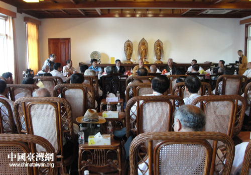 中國臺(tái)灣網(wǎng)7月8日舟山消息 日前,臺(tái)灣最大道教聯(lián)誼會(huì)寺廟金蘭會(huì)一行130余人在會(huì)長王增榮的帶領(lǐng)下來到浙江普陀山交流參訪。普陀山佛教協(xié)會(huì)會(huì)長道慈大和尚接待了參訪團(tuán)一行,雙方舉行了兩岸宗教文化交流座談。