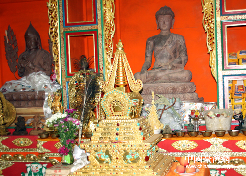 青海熱貢畫院珍藏的泥雕作品。熱貢泥雕不用燒制,制作完成后自然晾干。(中國臺灣網 楊云濤攝)