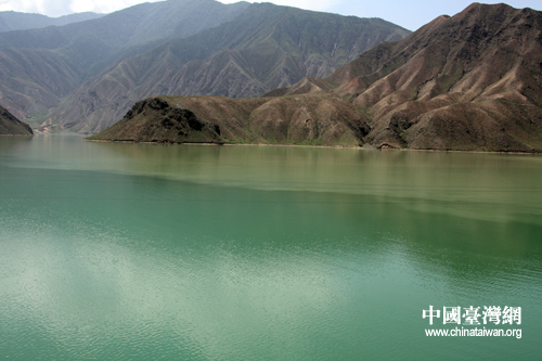 黃河之水青海來。黃河上游云、山的倒影在水中清晰可見。(中國臺灣網 楊云濤攝)