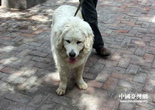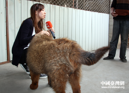 臺灣記者與藏獒零距離接觸。(中國臺灣網(wǎng) 楊云濤攝)