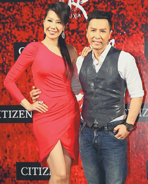 甄子丹(右)帶老婆汪詩詩(左)一起走紅地毯。圖片來源:臺灣《聯合報》