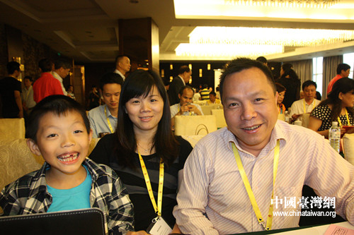 來自湖南長沙的鄧先生和來自臺北的太太以及8歲的兒子在論壇現(xiàn)場。(中國臺灣網(wǎng) 栗琰 攝)