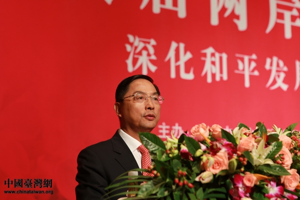 中共中央臺辦特邀嘉賓蔣耀平在第八屆兩岸經貿文化論壇上作題為《四年來兩岸經濟關系的回顧及對未來的展望》的主題演講。(中國臺灣網 于斯文 攝)