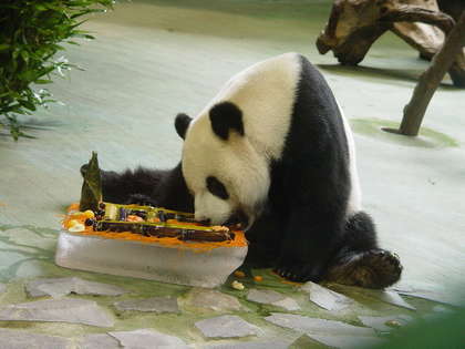 中國臺灣網8月30日消息 據臺灣媒體報道,贈臺大熊貓“團團”、“圓圓”今天8歲了,臺北動物園再度準備了豐盛的生日宴來“犒勞”小兩口。