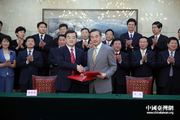 9月4日上午,國務院臺灣事務辦公室與河北省人民政府在京簽署了促進冀臺交流合作備忘錄。中共中央臺辦、國務院臺辦主任王毅和河北省委副書記、省長張慶偉共同出席簽字儀式。(中國臺灣網 王偉 攝)