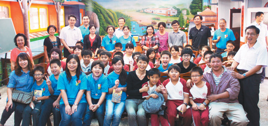 馬英九夫人周美青(中)到彰化縣二林鎮(zhèn)香田小學(xué)與小朋友分享故事,讓小朋友感到很開心。圖片來源:臺(tái)灣《聯(lián)合報(bào)》