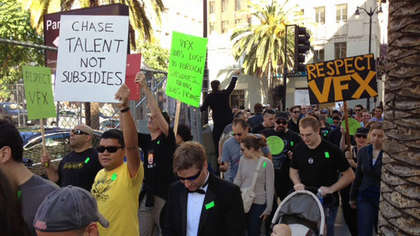 《少年Pi》特效公司申請破產,500員工到奧斯卡會場前抗議。圖片來自臺灣媒體