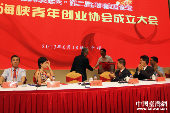 與會領導為平潭海峽青年創業協會授牌。(中國臺灣網 王思羽 攝)