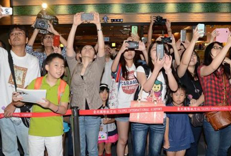 NBA火箭隊球星林書豪21日在松山機場搭機前往上海,許多粉絲特別到機場送別。(來源:臺灣《中國時報》)