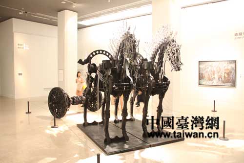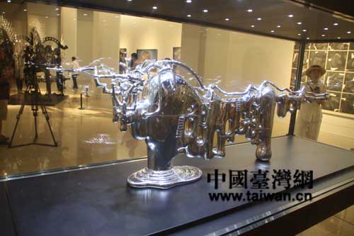 臺(tái)灣藝術(shù)家席時(shí)斌的雕塑“模型:阿濕波”以不銹鋼、銅、木料、等制作(中國(guó)臺(tái)灣網(wǎng) 蕪?fù)?攝)