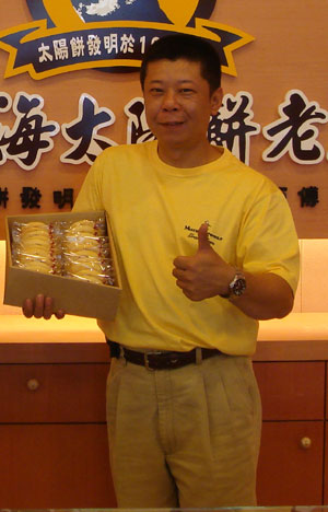 魏清海的一生等于太陽餅的歷史,1949年在臺(tái)中北屯開設(shè)糕餅店“元明”商店,后來太陽堂餅店林紹崧欣賞魏清海的技藝,聘他為制餅師傅,將他研發(fā)出的餅命名“太陽餅”,以此打出名號(hào)。