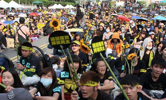 反服貿協議學生號召全民在3月30日上凱道,從今日中午人群便如潮水般的向凱道匯集,根據“警政署”估算參加此次抗議人數最多時高達11. 6萬人,過程大致平和,整起活動在晚間7時30分學生領袖林非凡演講后,宣告結束解散,聚集在凱道的群眾開始散去,至晚間9點就幾乎全數離開。