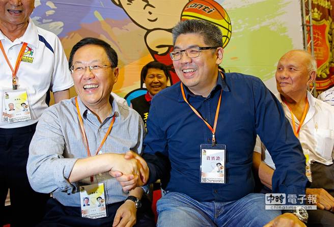 中國臺灣網4月21日消息 據臺灣“中時即時”報道,國民黨臺北市長候選人連勝文今晚應籃協理事長丁守中邀請,出席臺灣少年籃球錦標賽開幕,兩人見面握手,丁守中高呼“國民黨當選!”兩人互動熱絡。