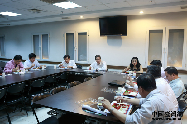 張志軍與臺商一起吃便當(dāng)。(中國臺灣網(wǎng) 于斯文 攝)