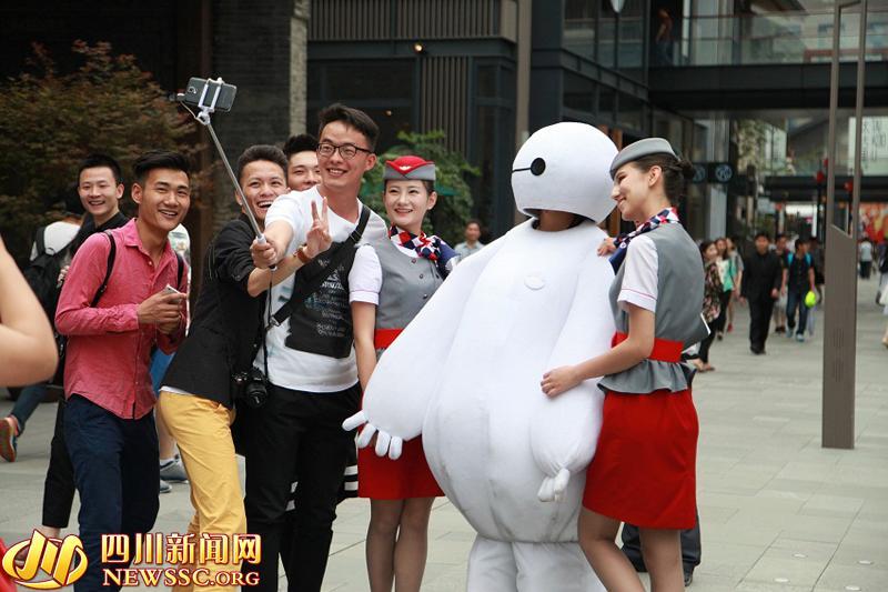 大白助陣“快閃”,換衣服前被路人圍觀索合影。