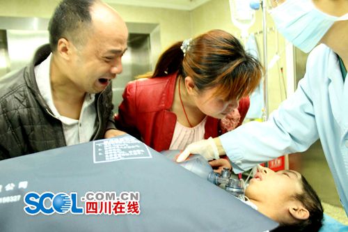 下午1:00左右,各項(xiàng)準(zhǔn)備工作做好,鐘先祿手里多了一捧鮮花,那是醫(yī)院獻(xiàn)給這對農(nóng)村夫婦的敬意,不多時(shí),插著管子的鐘天亮被護(hù)士推著從手術(shù)室出來,霎時(shí),哭聲四起,鐘先祿和劉元英緊貼兒子臉龐,不停把涌出來的淚水抹去,眼睛眨也不眨的盯著兒子,他們要再清晰的看兒子最后一眼……電梯旁,一位素不相識的老人,朝著推出來的鐘天亮默默閉目,雙手合十,送少年遠(yuǎn)行……