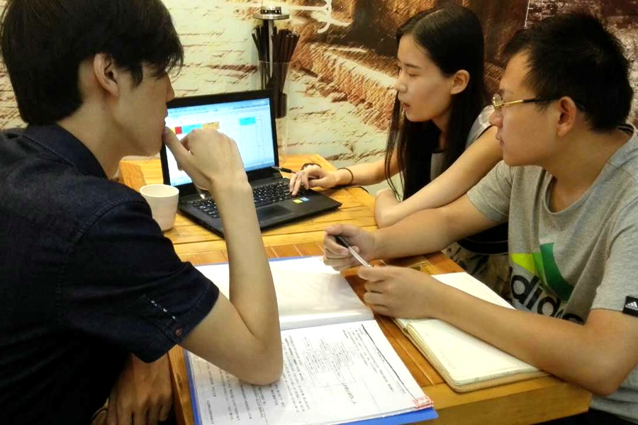 現(xiàn)在每周一,三人都會聚在一起探討面館的經(jīng)營之路,制定下一步工作計劃。中國青年網(wǎng)記者 王婧 攝