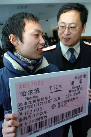 現年23歲的小白家住四川省廣安市的一個農村,是哈爾濱工業大學建筑學院的研究生,剛剛讀一年級。小白告訴記者:“我家離哈爾濱實在太遠了,每次回家都要在車上坐40多個小時,買票更是頭疼的大問題。今年元旦剛過,系里的老師說要給四川籍的學生贈票,這個禮物對我是最需要了!