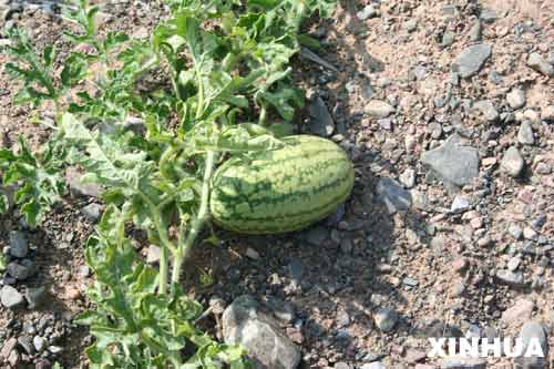 在石頭縫里生長的硒砂瓜。 新華網(wǎng)王苗苗 攝