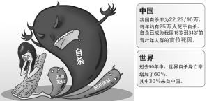 “每當秒針輕輕滑動30下,就有一個人選擇離開這個世界。”這是第六個“世界預防自殺日”發布的公告。調查顯示,自殺已經成為我國15歲到34歲的青壯年人群的首位死因。每年我國有225萬人自殺,其中25萬人自殺死亡。