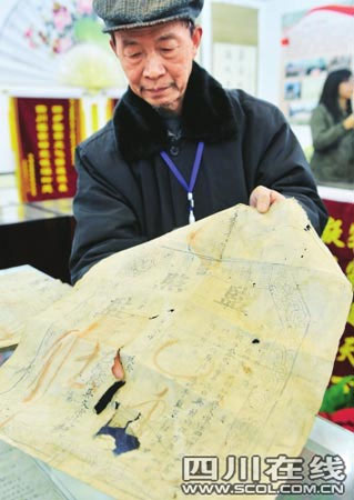 “由于客家文化在歷史記錄中并沒(méi)有太多的正史,所以這些來(lái)自民間的文物和文獻(xiàn)對(duì)于客家文化的研究有幫助。”四川省社科院移民與客家文化研究中心主任陳世松教授說(shuō),這次展出的文物都是從民間收集而來(lái),共有100多件,其中包括清末最早的四川地圖、清代客家人遷徙四川時(shí)購(gòu)買的地契等。(記者鄧宇 攝影楊濤)
