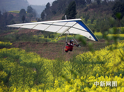 中新網丹棱3月12日電(劉忠俊)12日中午,有著民間“中國第一飛人”之稱的67歲衣瑞龍,自駕無動力三角翼懸掛滑翔機成功飛越海拔1142米的四川丹棱老峨山。在三分鐘左右的飛行過程中,衣瑞龍一帆風順成功降落在預定地點。