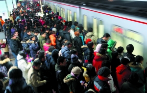 “先騎自行車到地鐵站,需7分鐘,乘地鐵花去50分鐘,然后坐公交到單位附近的公交站,花15分鐘,最后步行3分鐘,抵達(dá)單位。我花75分鐘上班還算‘正!。”谷江稱,他的朋友、同事大都住在“睡城”,除了通州,還有天通苑、回龍觀等地。因?yàn)樯磉叢簧偃藳]有夠上“52分鐘”的平均線,他們都笑稱那是“先富者”的標(biāo)準(zhǔn)。