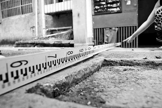 沒幾天,24幢2單元5樓的張大伯也感到不對勁!翱傆X得樓房在晃,后來發現只要小區附近有大車開過,房子都會晃。剛開始,我還以為是自己身體有什么問題,問了家人和對門鄰居,才發現大家都感覺到了!弊蛱煜挛,頭發花白的張大伯這樣和記者描述第一次感覺到沉降的感覺。他說:“這種生活別人真是無法想象,我年紀大了,真不知道什么時候才能解決問題。”