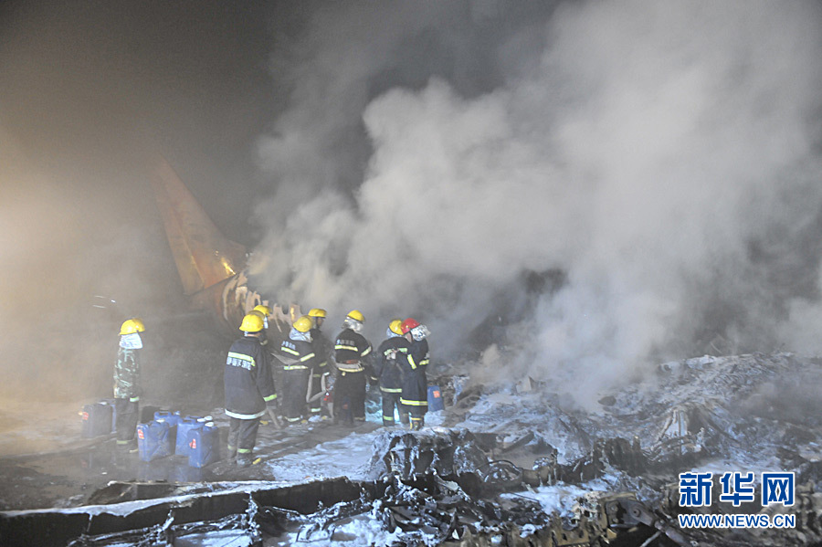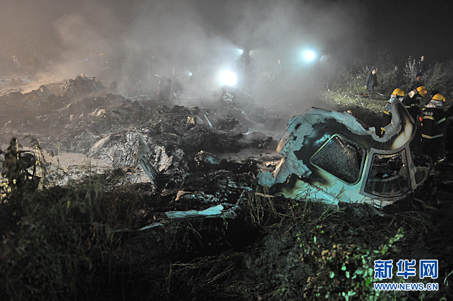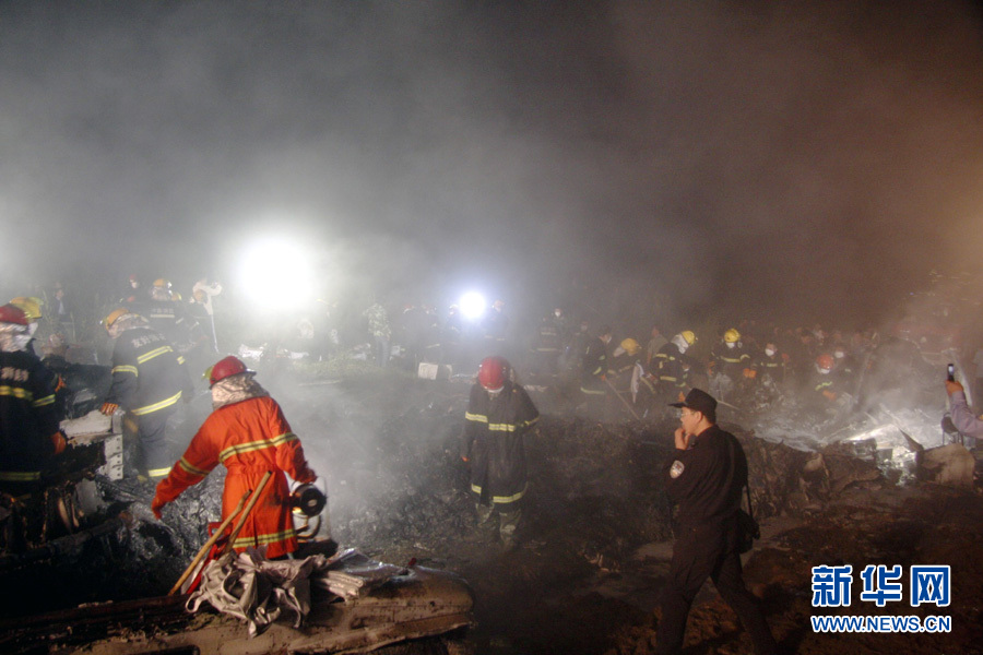 2010年8月25日 伊春飛機失事已確認有43人遇難 8月25日凌晨,救援人員在飛機失事現場搜尋幸存者。 24日21時36分左右,一架從哈爾濱飛往伊春的客機在接近伊春機場跑道時失事,這架飛機的航班號為VD8387。據了解,機上共有旅客91人(其中兒童5人),機組5人,目前已確認43人遇難,另外53名傷者已全部收治在當地醫院。新華社發 李廣福 攝