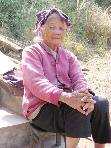 記者見到寧宣榮時,老人正坐在臺階上和老姐妹們閑聊。從老人的言行舉止中,可以看出她的身體狀況并不錯,頭不昏、眼不花。由于聽不懂當地的壯話方言,記者請屯長梁永干幫忙向老人打聽歲數。老人笑說:“今年86歲。”