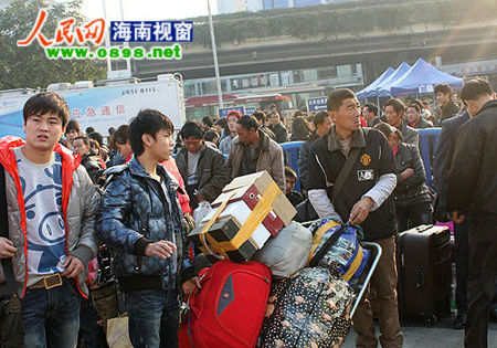 此時,廣場上已經聚集了許多等待進站的旅客,為了應付冬日早晨的嚴寒,許多人不得不在廣場上來回走動,甚至有的農民工直接拿起被子在廣場上打起了地鋪。王勝今年十七歲,家住陜西,單薄的身軀在凜冽的寒風中輕輕的抖著,一身單薄的衣褂被緊緊的裹在瘦弱的軀體上,王勝告訴筆者,自己昨天晚上就從東莞趕到這邊了,由于附近旅館很貴就在廣場上將就一晚,一陣冷風吹過,王勝不僅打了個噴嚏。在廣場上等待的還有一大批剛剛從海南趕過來的大學生,由于廣東的氣溫相對于海南還要低得多,許多準備不足的同學在那凍得直跺腳。