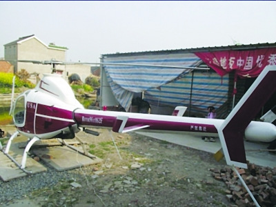 停在興化農家院里的直升機。“喜羊羊”提供