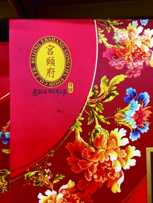 調查中,記者發現,宮頤府月餅禮盒“雙生產日期”的問題并非僅出現在樂天瑪特超市。葉先生日前在永輝超市魯谷店購買的宮頤府溢香月餅也出現了上述情況,每盒售價218元。在標明的2016年8月1日的生產日期下方,隱約可見“2015年8月”的印跡。