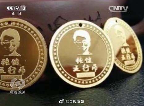 這就是五行幣,據說純金制造。一面是頭像,刻著張健五行幣字樣,下面有一組數字編號,另一面是些裝飾圖案,看起來并沒有什么神奇之處。怎么就能夠5000元買上一枚,一年就能達到400萬元呢?參與者們說,這五行幣可了不得,因為在這背后連帶著的是數字貨幣。