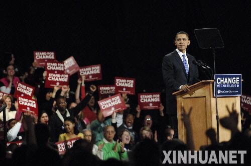 據初步統計結果,角逐2008年美國總統大選的伊利諾伊州國會參議員奧巴馬和前阿肯色州州長赫卡比首戰告捷,3日晚在艾奧瓦州分別舉行的民主黨和共和黨基層會議選舉中獲勝。 新華社記者張巖攝