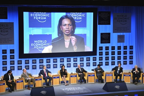 美國國務卿賴斯在世界經濟論壇年會上發(fā)言。