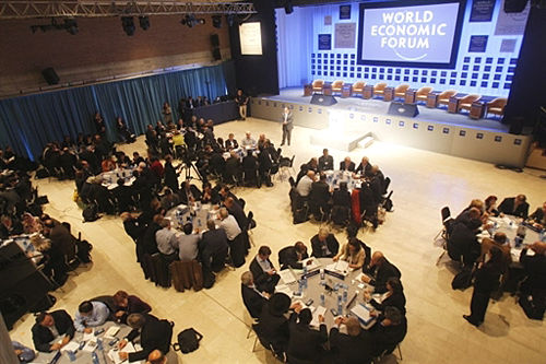 世界經濟論壇年會舉行圓桌會議,政商領袖討論經濟形勢。