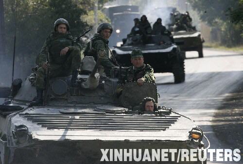 10月8日,俄羅斯維和部隊士兵乘坐裝甲車撤離南奧塞梯附近的一個哨所。俄羅斯維和部隊司令庫拉赫梅托夫8日宣布,俄維和部隊已開始從南奧塞梯沖突“安全區”的6個哨所撤出,撤離行動將于當天結束。 新華社/路透