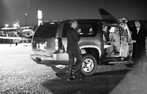 10月25日傍晚,新墨西哥州,結束了一天的競選宣傳活動,奧巴馬準備乘車奔向下一個起點。