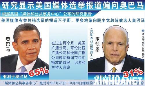 2008年11月1日 圖表:研究顯示美國媒體選舉報道偏向奧巴馬 新華社發