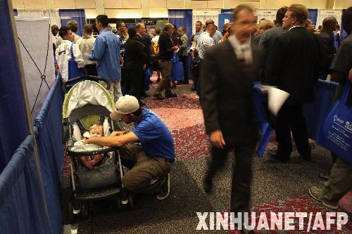 經濟疲軟 美國申請失業救濟的人猛增:9月25日,在美國科羅拉多州丹佛市,一名男子在州辦招聘會上照看孩子,而他的妻子正在招聘會上尋覓就業機會。當日,美勞工部報告說,受到經濟放緩以及颶風來襲的影響,上周美國首次申領失業救濟金的人數猛增3.2萬人,升至49.3萬,達到近7年來最高水平,并遠遠超過分析人士預計的44.5萬人。 新華社/法新