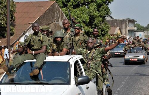 12月24日,在幾內亞首都科納克里,政變軍人行進在大街上。當天,由幾內亞政變軍人發起成立的“國家民主與發展委員會”再次通過幾國家廣播電臺發表公報,宣布在全國實施宵禁。 新華社/法新