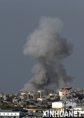 1月13日,加沙地帶北部遭轟炸后冒起濃煙。當(dāng)天清晨,以色列空軍、海軍和地面火炮對(duì)加沙城發(fā)動(dòng)了自去年12月27日開始對(duì)加沙的軍事行動(dòng)以來最猛烈的打擊。 新華社記者殷博古攝