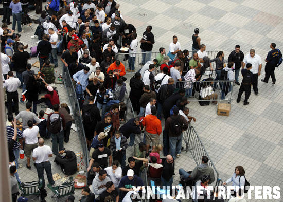 2月2日,在美國佛羅里達(dá)州的邁阿密,人們排隊(duì)等待提交應(yīng)聘消防員的申請表。邁阿密市準(zhǔn)備新增35名消防員,并宣布只接受前750人的求職申請表。數(shù)百名申請者為能提交申請表在戶外排隊(duì)露營了三夜。 新華社/路透